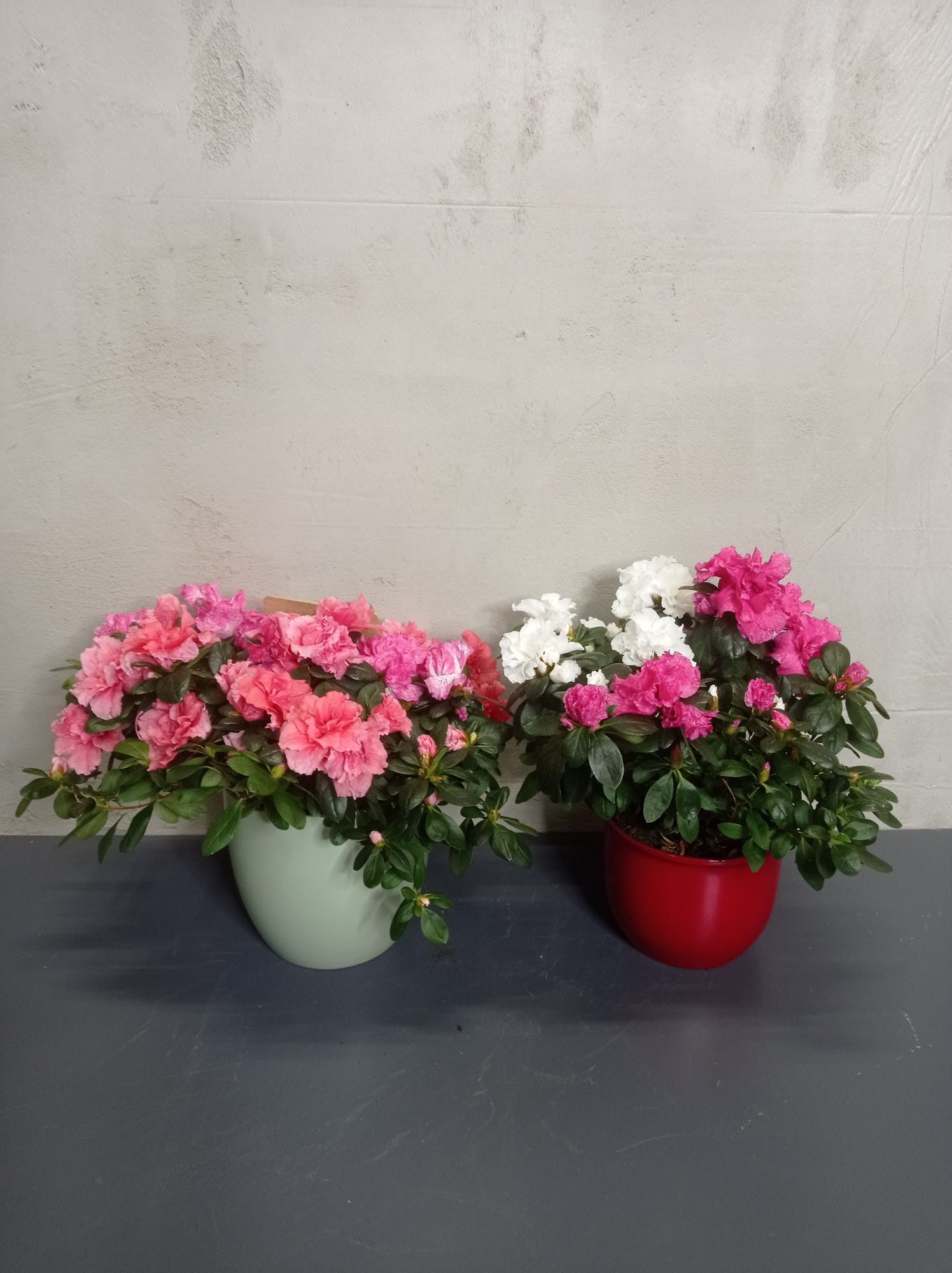 Zwei Azaleen in keramik Uebertoepfe